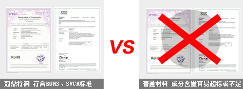順為特鋼成份達標,符合ROHS、SVCH等相關(guān)標準。順為承諾:材質(zhì)化驗成分不足或假貨,假一賠十。